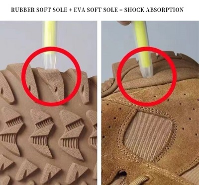 Experience superior comfort with our Rubber Soft Sole and EVA Soft Sole combination, designed for optimal shock absorption. This innovative pairing reduces impact, providing all-day comfort and support for your feet, even in the toughest conditions. |
