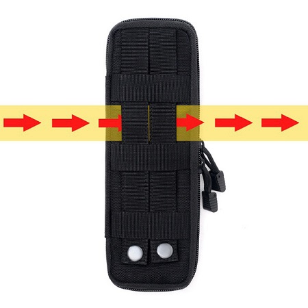 SISTEMA MOLLE: Bolsa porta cuchillos con correas MOLLE verticales útiles para fijar en cualquier cinturón táctico, plataforma MOLLE, chaleco militar u otra mochila MOLLE. Colgando molle manera es el cinturón de tela directamente a través del agujero en la mochila, y sujeta el botón. |
