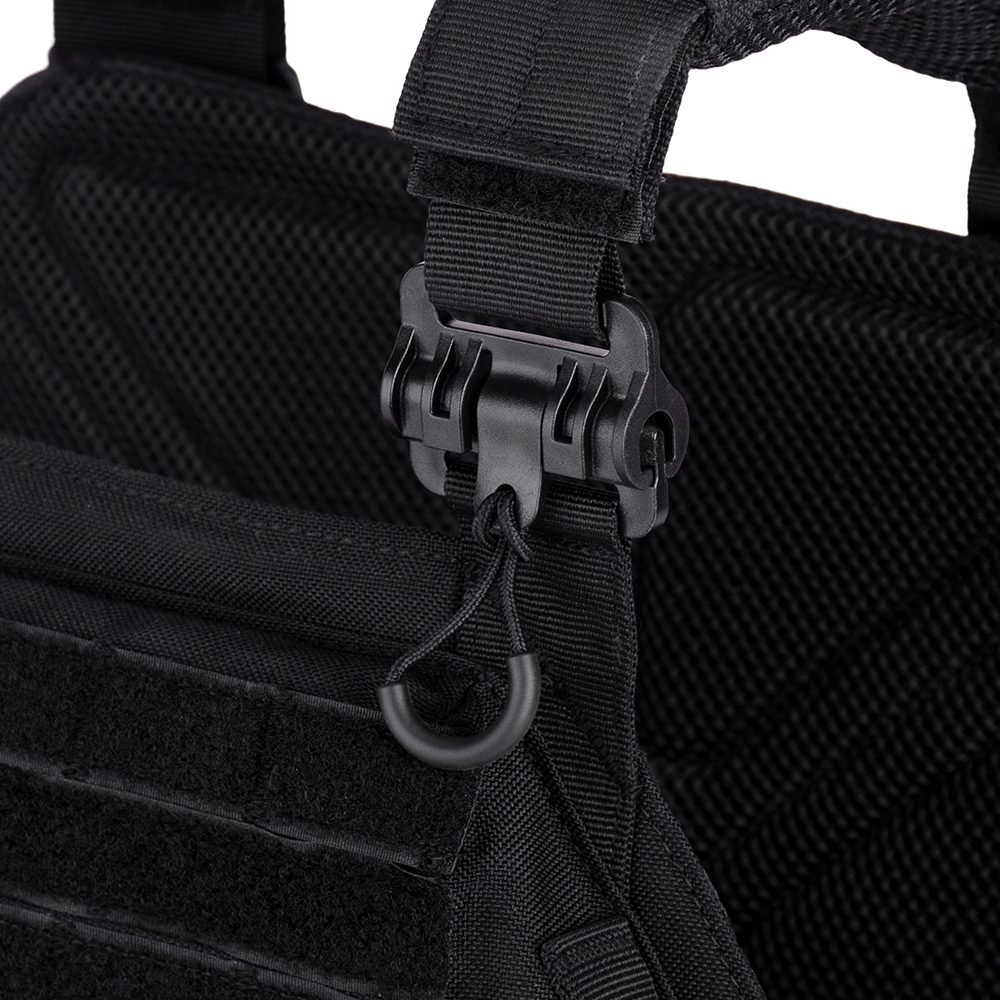 In emergencies, the tactical vest can be quickly released using the built-in Quick-Release Latch for rapid disengagement. |