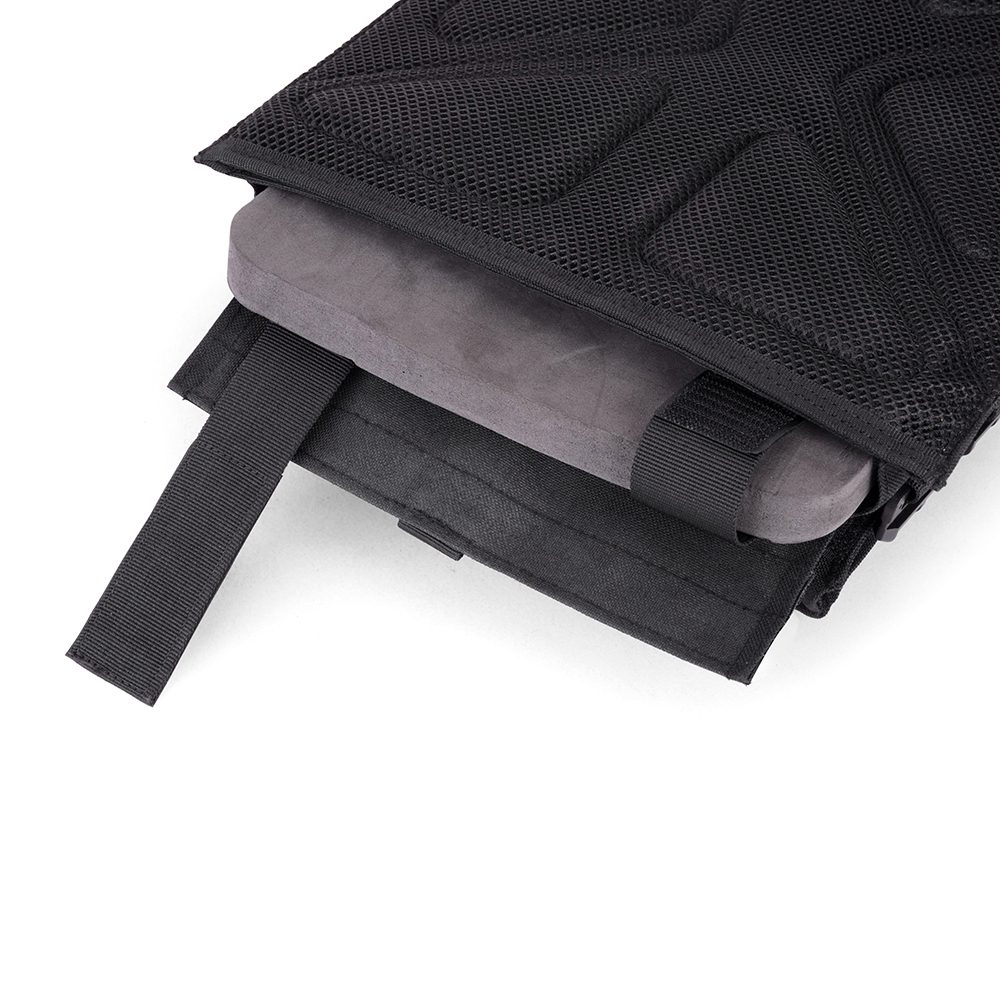 This tactical vest swed MOLLE webbing on the front, back, and side magazine pouches, providing additional storage space. |