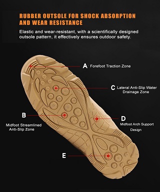 Rubber outsole for shock absorption and wear resistance, elastic and wear-resistant, with a scientifically designed outsole pattern, it effectively ensures outdoor safety |