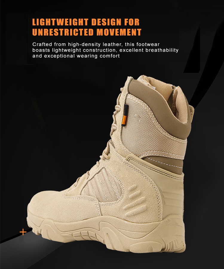Explore the outdoors with our high-top side-zip tactical boots, designed for durability and comfort. Featuring sturdy construction, ankle support, and easy on/off with side-zip closure, these boots provide maximum performance on rugged trails. Ideal for hiking, trekking, and tactical use.