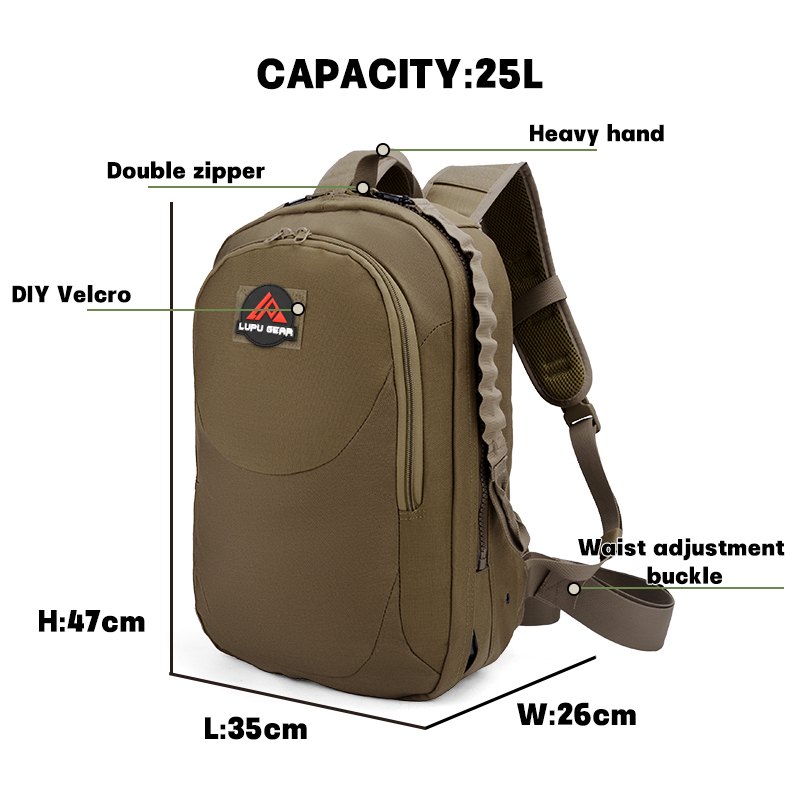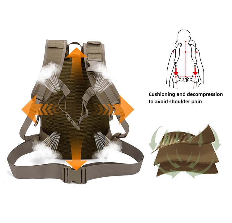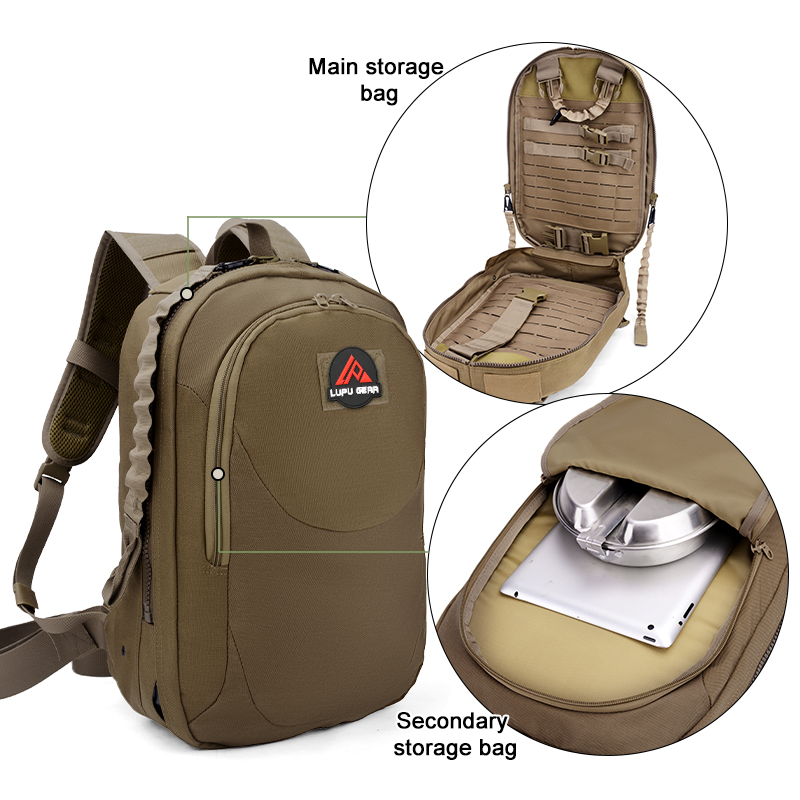The tactical backpack features a spacious main storage bag and a secondary compartment for organized storage. Its MOLLE module allows for customizable attachments, enabling you to expand your carrying capacity with ease. Perfect for outdoor enthusiasts or daily use, it ensures functionality and versatility. |