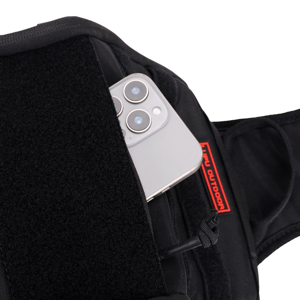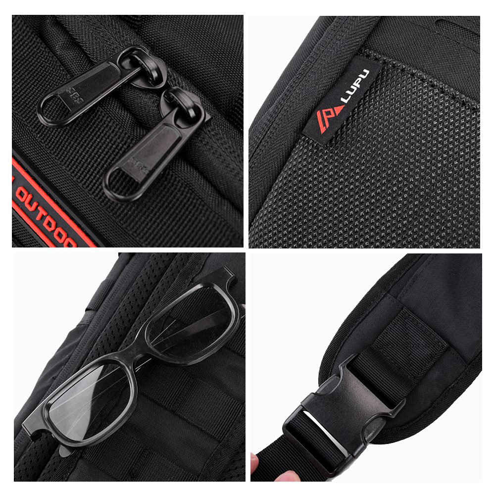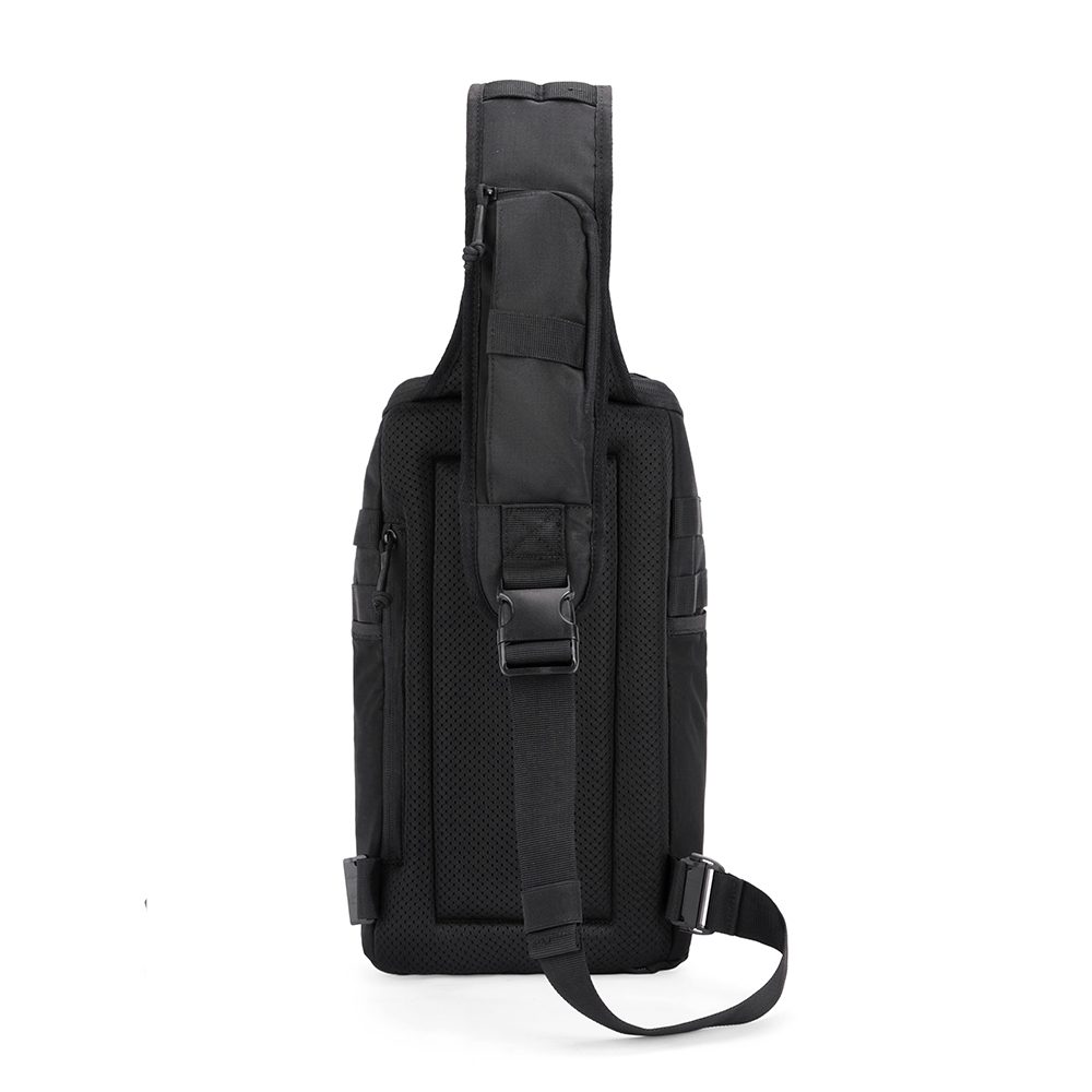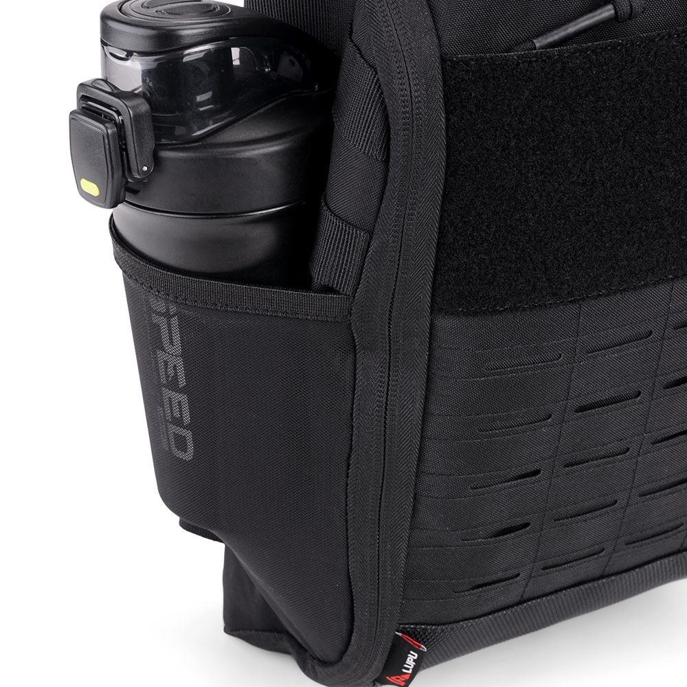 LUPU LP2133 Laser-Cut Molle Tactical Black Sling Bag in durable 500D nylon offers lightweight, versatile storage for urban, outdoor, military, or law enforcement use. Features include customizable front Velcro panel, secure hidden and side zipper pockets, and organized internal compartments—designed for convenience, durability, and modern tactical style.