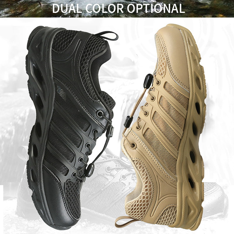 These breathable, non-slip outdoor tactical wading shoes for men are designed for rugged adventures. With a durable, slip-resistant sole, they offer excellent traction in wet conditions. Ideal for wading, hiking, and other outdoor activities, providing comfort, stability, and long-lasting performance.