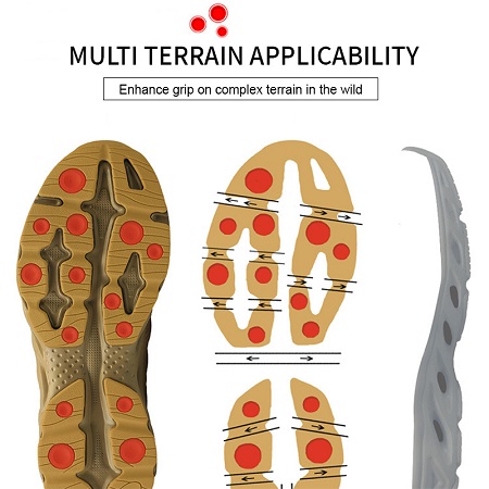 Designed for multiterrain applicability, these shoes enhance grip on complex wild terrains, ensuring stability and confidence while navigating diverse outdoor environments. Perfect for all your adventures. |