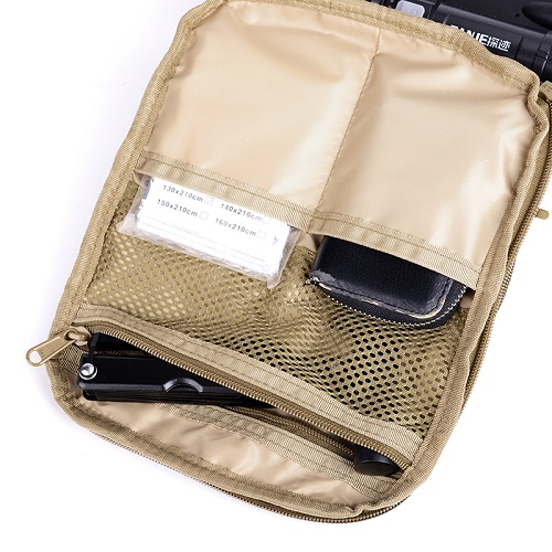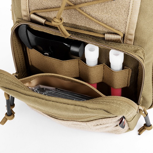The zipper secondary bag features sewn-in MOLLE webbing for customizable storage, along with an open-style inner pocket for easy access to essentials. |