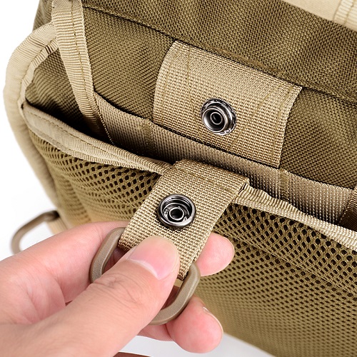 The back pocket of this sling bag is securely closed with a durable metal snap button, providing easy access while keeping your valuables safe and secure. Ideal for everyday use and tactical environments. |