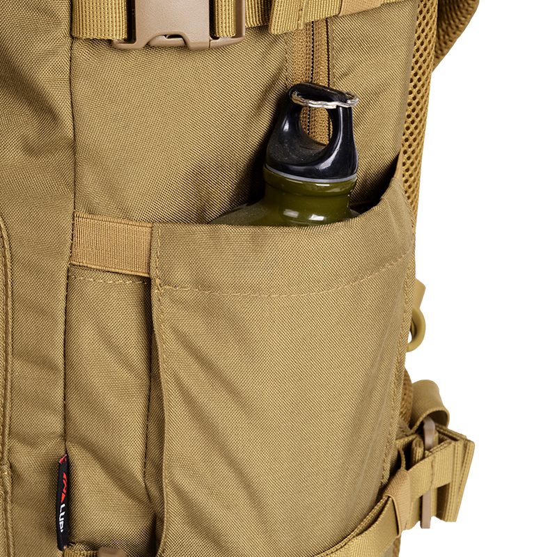 Increased-Height Side Bottle Pockets: The increased-height side bottle pockets provide extra storage, securely holding water bottles or gear, offering easy access during outdoor adventures and tactical activities. |