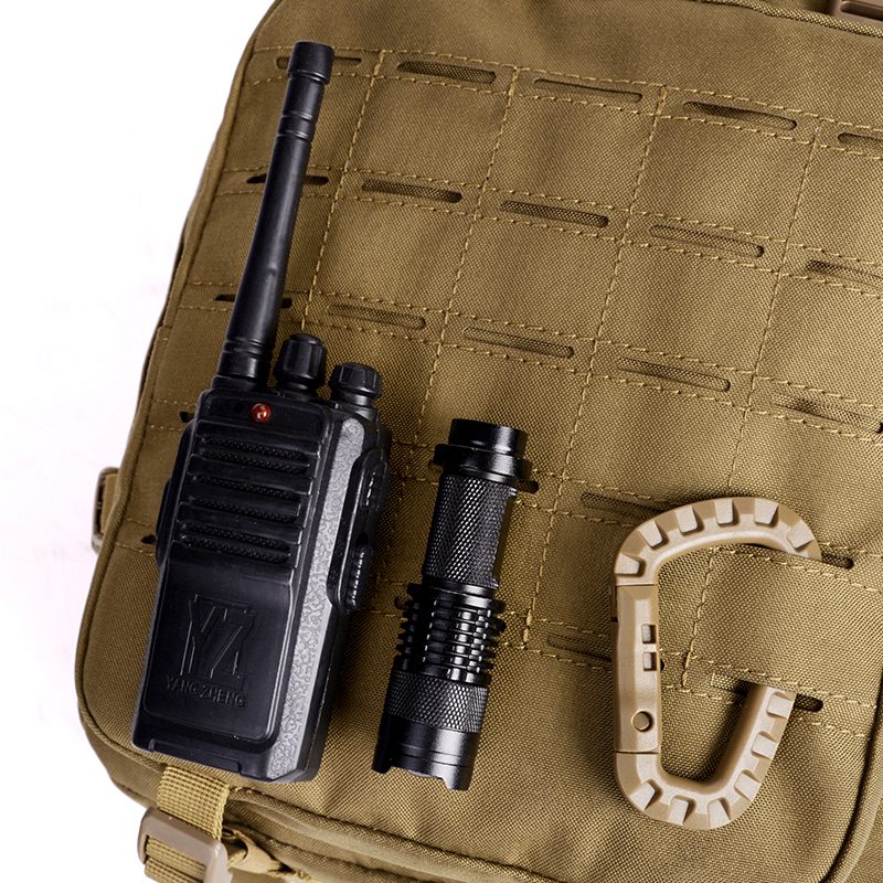 MOLLE System: The laser-cut Molle system offers enhanced durability and precision, allowing for secure, customizable attachment of gear, perfect for tactical and outdoor use. |