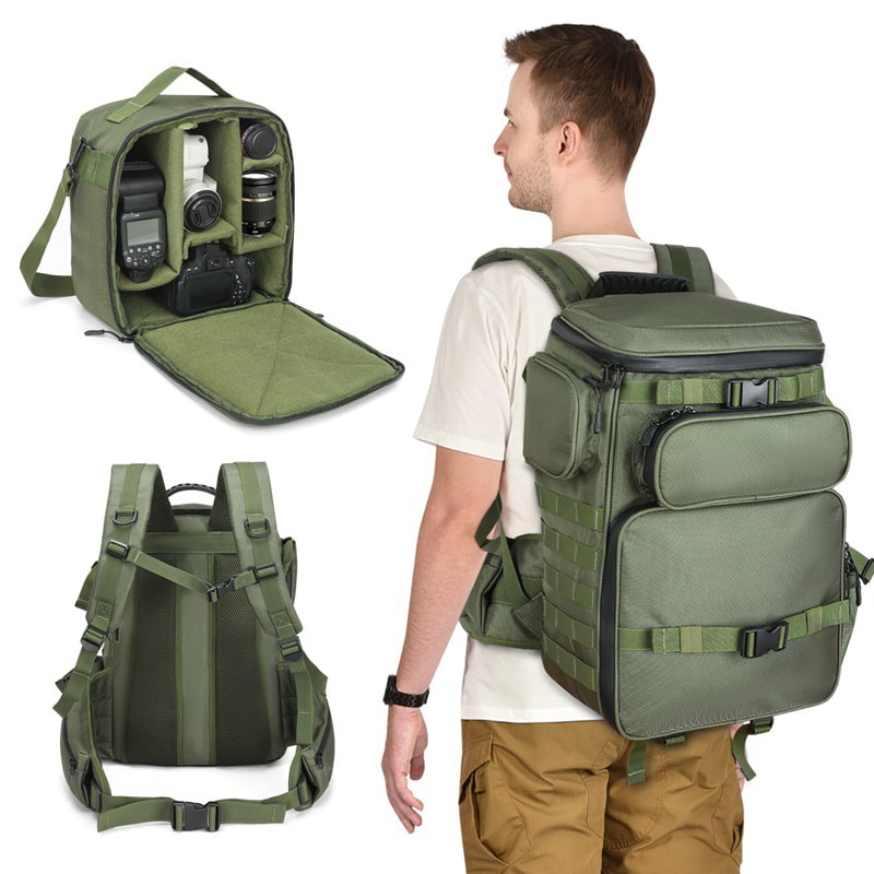 1680D Oxford Waterproof Green Tactical Camera Backpack