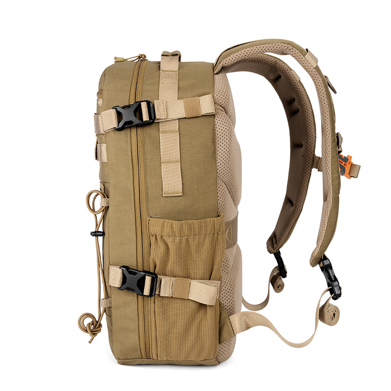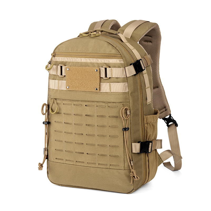 The Khaki Laser Cut Molle Backpack For Tactical is designed for durability and efficiency. Featuring a side cup silo for quick hydration access, this mochila tática is perfect for outdoor adventures, military, or tactical operations. Its laser-cut Molle system offers customizable storage options, making it a versatile choice for any mission.