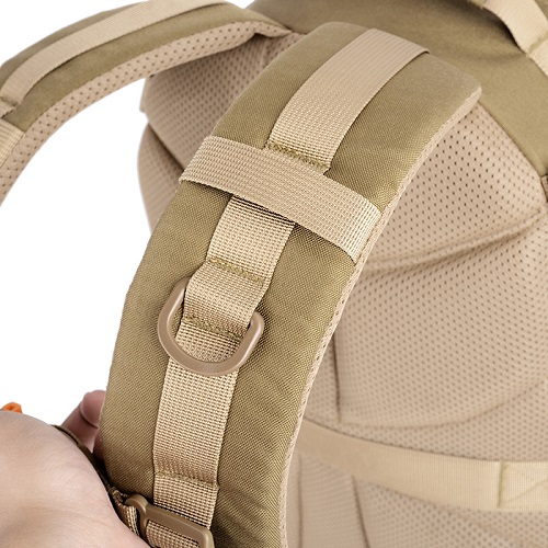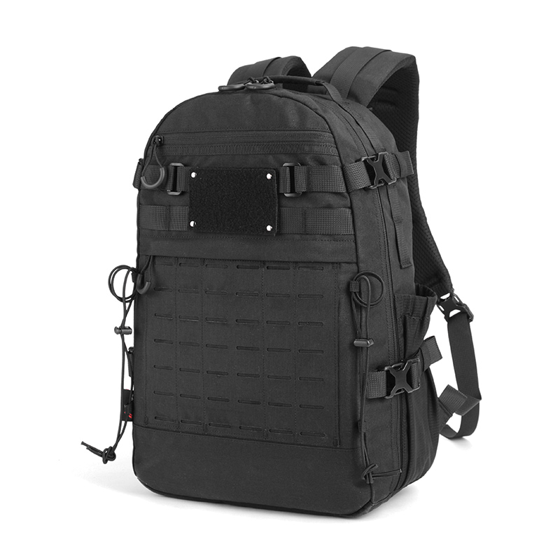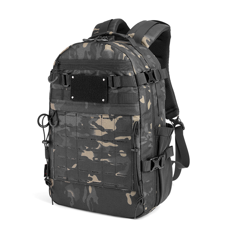 The laser cut molle backpack's shoulder straps are crafted with a breathable sandwich mesh design for comfort and ventilation. Sewn with MOLLE webbing and adjustable in length, they offer a customizable fit for enhanced support during long wear.