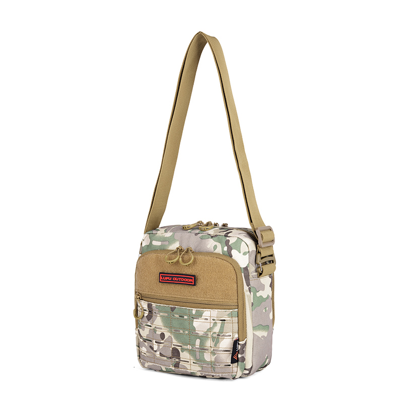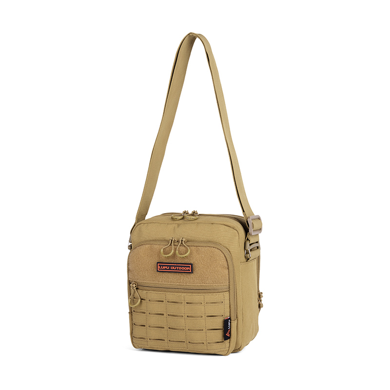 The Khaki Oxford Laser-Cut Molle Crossbody Bag offers durability and functionality for tactical use. Featuring a laser-cut Molle system and Velcro, it's perfect for carrying gear securely while ensuring comfort and versatility for outdoor activities.