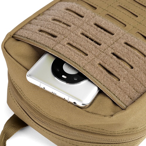 Featuring an inner zipper pocket, breathable grid zipper, and MOLLE webbing, this design ensures secure storage, easy access, and modular customization for tactical use. |