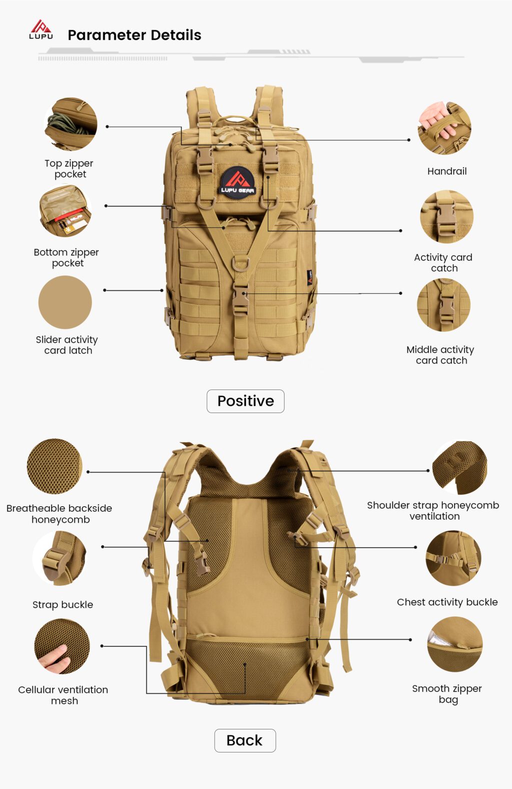 The design of the LUPU tactical backpack for men is sleek, with a modern tactical look that blends function with aesthetics. Its 45L capacity offers ample storage space, making it suitable for multi-day trips without feeling too bulky.