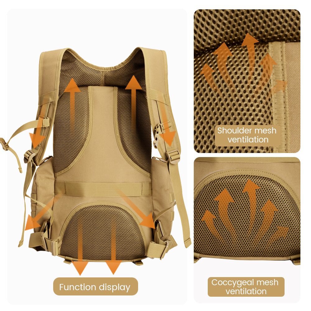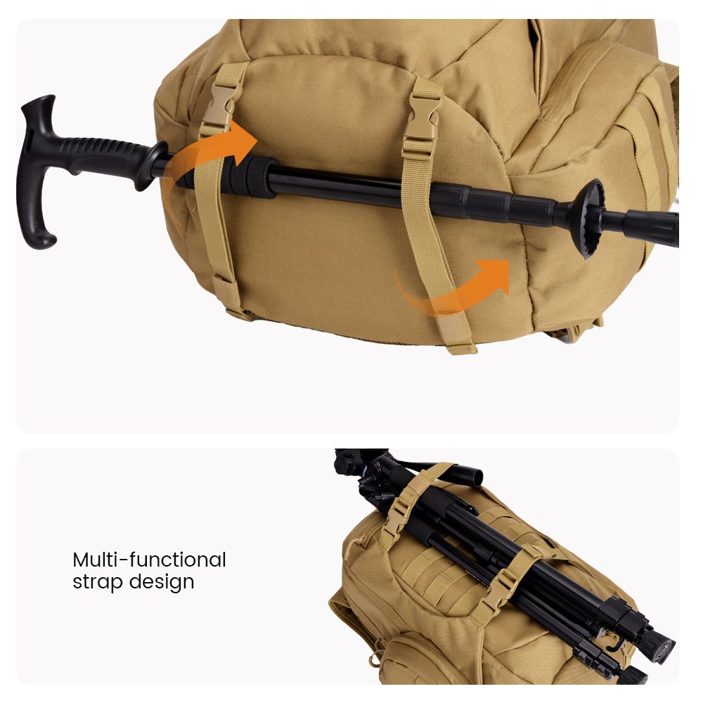 The men tactical backpack features practical side pockets, perfect for storing smaller items that need to be easily accessible. Use these side pockets to carry water bottles, snacks, or smaller tools for quick access during outdoor activities or tactical operations. The added side pockets help distribute weight evenly, providing better balance and comfort while wearing the backpack.