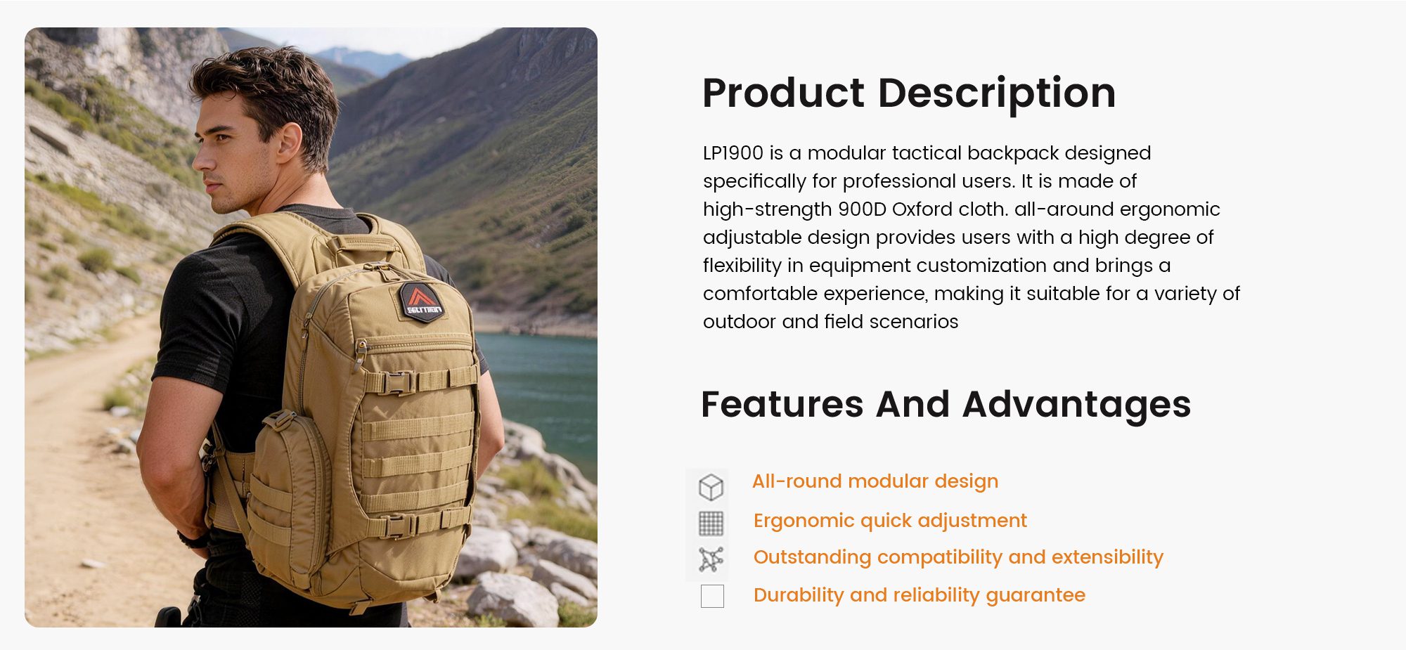 With its combination of rugged durability, functional design, and customizable features, the LP1900 is the ultimate choice for those who demand a high-quality tactical backpack that can stand up to the toughest conditions.