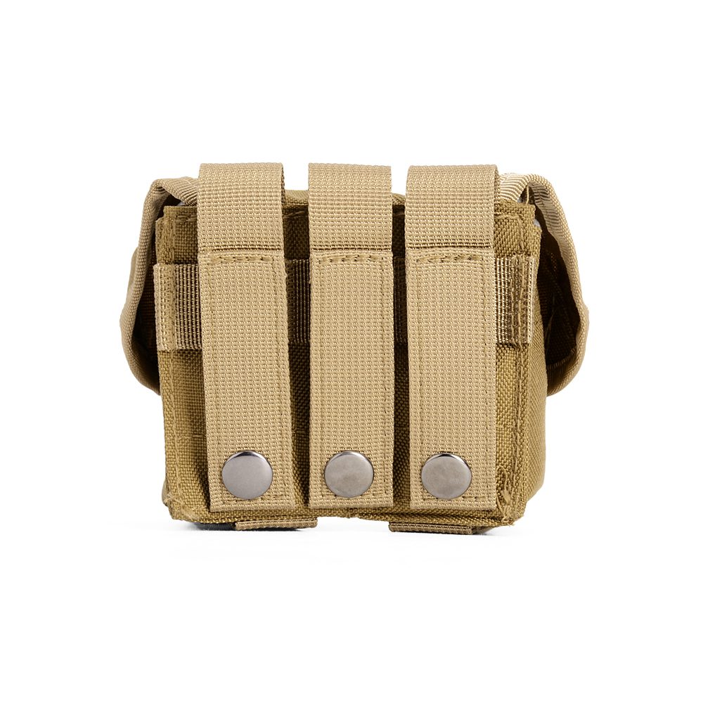 The back of the tactical attachment pouch is equipped with three small straps, each secured at one end with a metal snap fastener. These fasteners allow for a secure attachment to your gear, ensuring that the pouch stays in place even during intense movement. The metal snap fasteners are more durable than plastic options, making them ideal for heavy-duty use and ensuring long-term reliability.