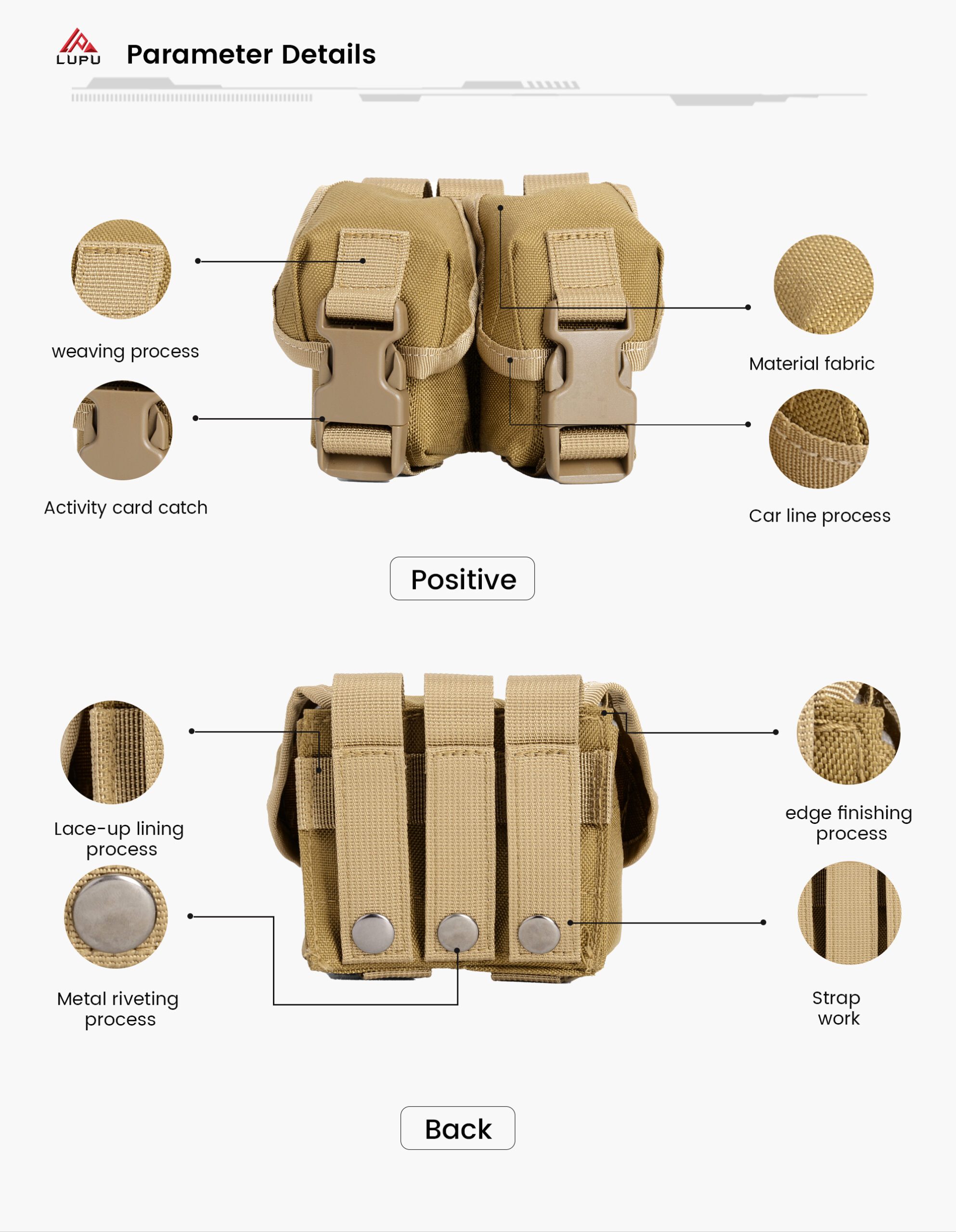 One of the standout features of the tactical attachment pouch LP1870 is its MOLLE (Modular Lightweight Load-carrying Equipment) compatibility. MOLLE is a webbing system commonly used in military and tactical gear, designed to allow users to attach pouches, holsters, and accessories to backpacks, vests, or belts. The tactical attachment pouch LP1870 is equipped with MOLLE straps, making it incredibly versatile for attaching to any MOLLE-compatible gear.